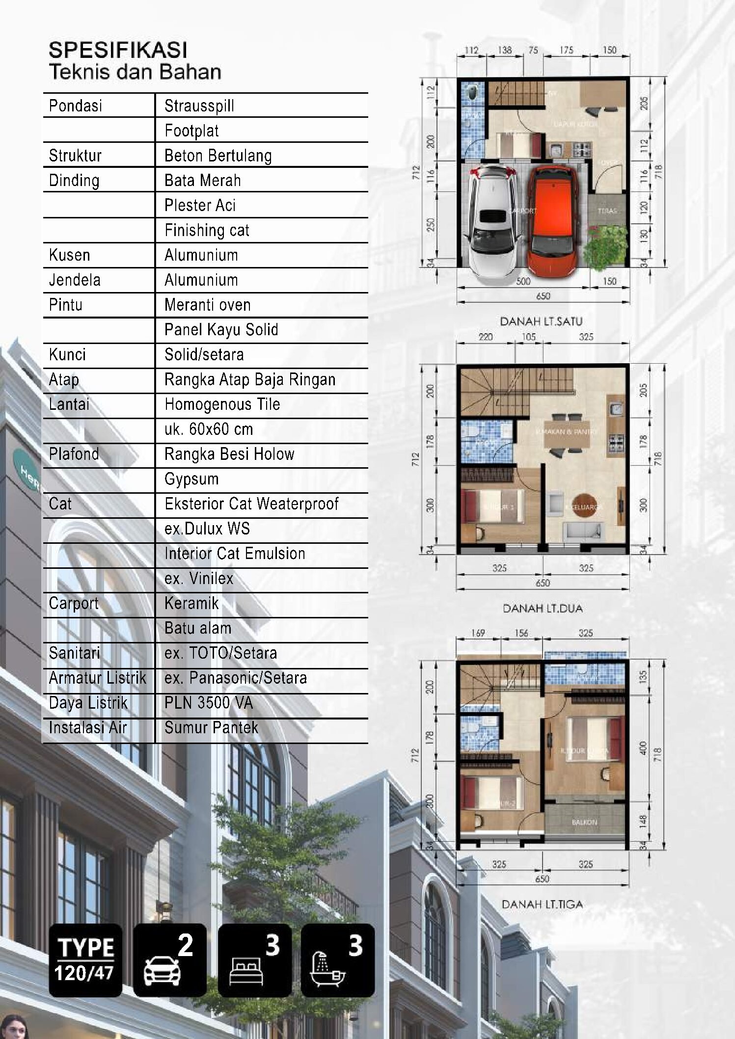 Luas Bangunan: 105 – 120 m²